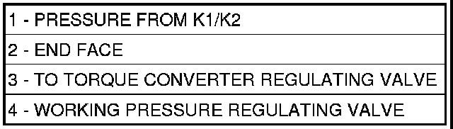 The regulating valve pressure is regulated at the regulating valve pressure regulating valve in relation to the working pressure (p-A) up to a maximum pressure of 8 bar (116 psi). It supplies the modulating pressure regulating solenoid valve, the shift pressure regulating solenoid valve and the shift valve pressure regulating valve.