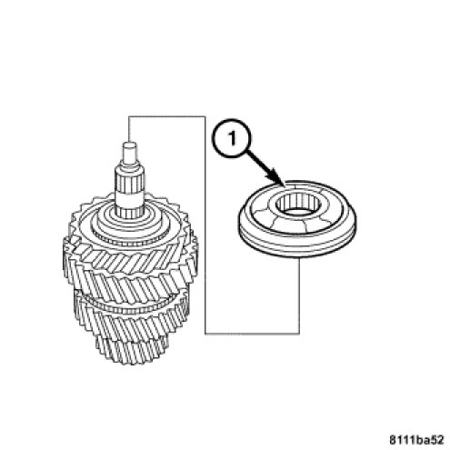 4. Press on the 5th/6th gear synchronizer assembly (1).