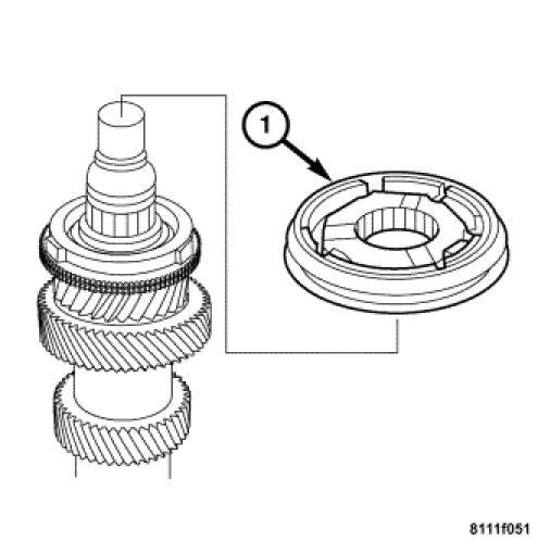 NOTE: The lobes on the friction ring (1) must engage in the recesses in the synchronizer ring (3).
