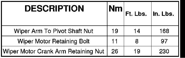 Wiper and Washer Systems: Specifications