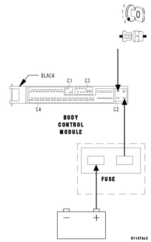 Connect a jumper wire between cavity 1 of the BCM C2 harness connector and B(+).