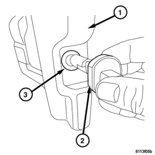 1. Insert the washer fluid level switch (2) into the rubber grommet (3) at the rear of the washer reservoir (1).