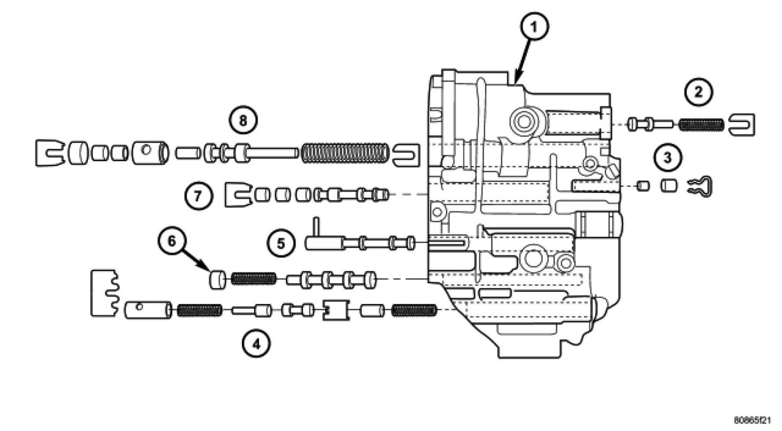 8. Install the overdrive clutch (#5) check valve (1)to separator plate.