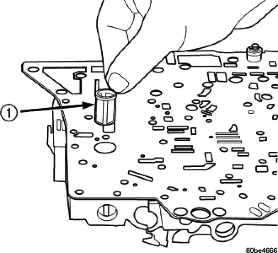 10. Install transfer plate (1)to valve body and separator plate. Make sure oil screen and #5 check valve do not bind.