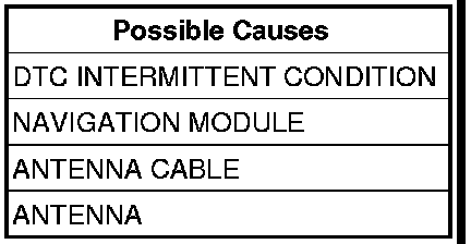 - The condition that caused this code to set is not present at this time. Check the antenna connections at the navigation unit and at the right A-Pillar (see service information).