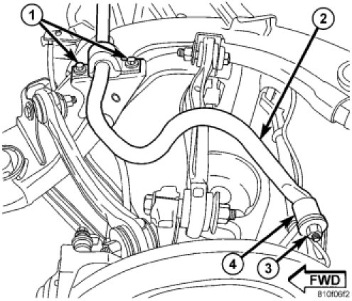 28. Remove bolt and nut (3) fastening stabilizer bar to each stabilizer link (4).