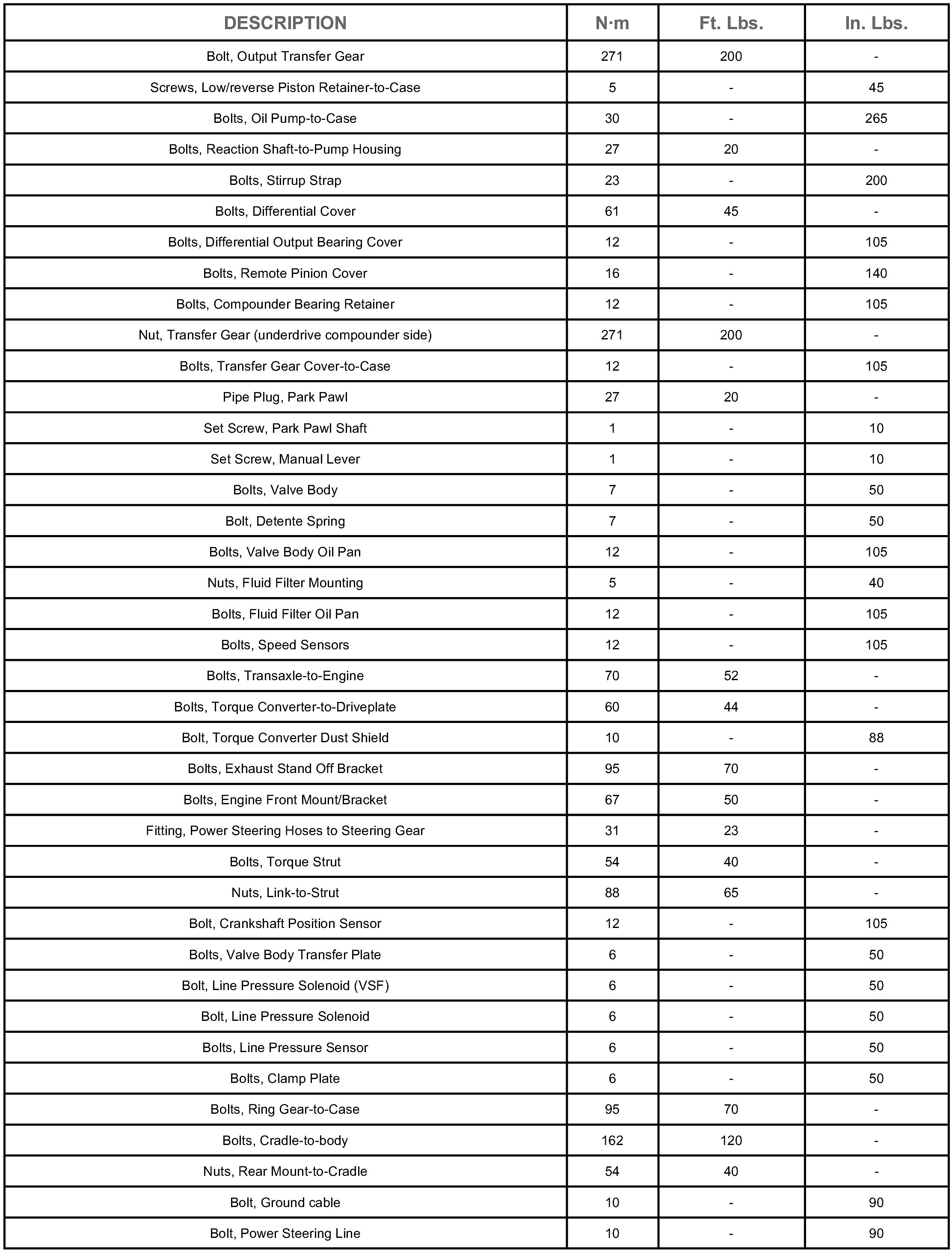 TORQUE SPECIFICATIONS