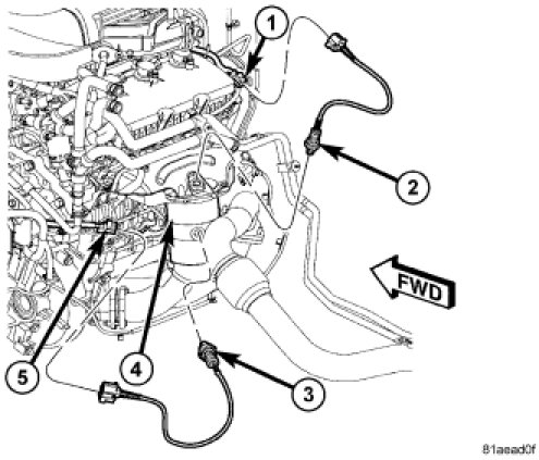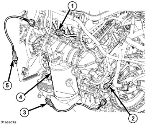 2. Connect O2S pigtail harness to engine wiring harness (5).