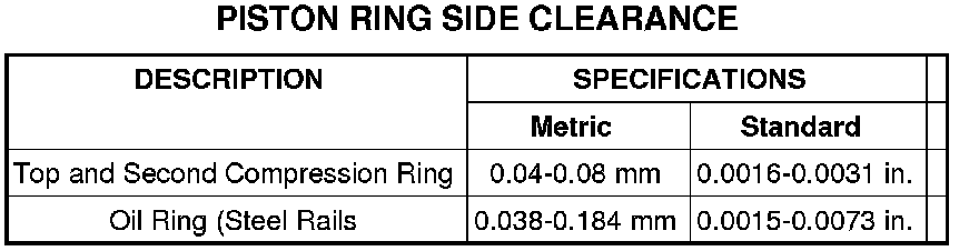 Piston Ring Side Clearance: