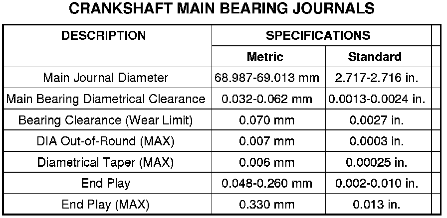 Tighten inner main bearing cap bolts to 20 Nm + 1/4 turn (15 ft. lbs. + 1/4 turn).