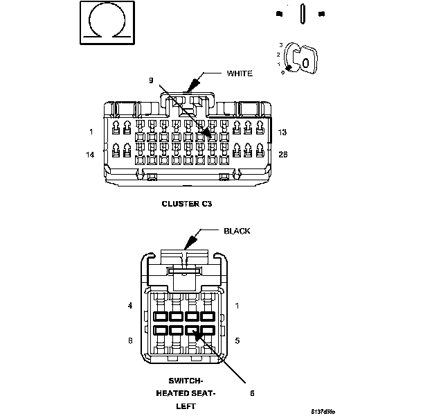 1. Measure the resistance of the (P81) Left Heated Seat Lo Indicator Driver circuit between the Cluster C3 connector and the Driver Heated Seat Switch connector.