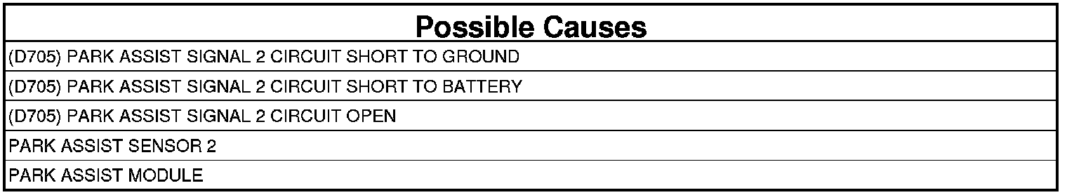 - Repair the (D705) Park Assist Signal 2 circuit for a short to battery.