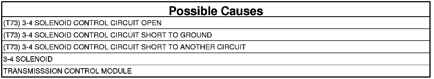 - Repair the (T73) 3-4 Solenoid Control circuit for a short to ground.