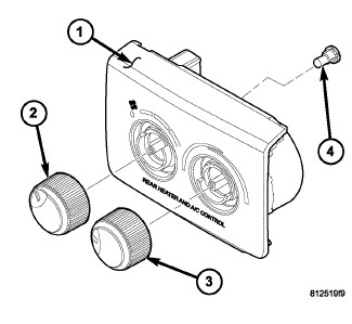 The rear A/C-heater control cannot be repaired and must be replaced if inoperative or damaged. The illumination lamp (4) and the control knobs are available for service replacement.