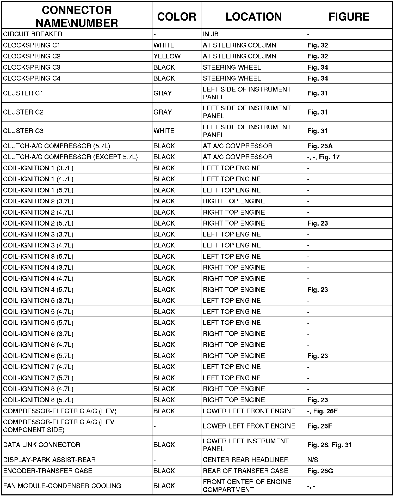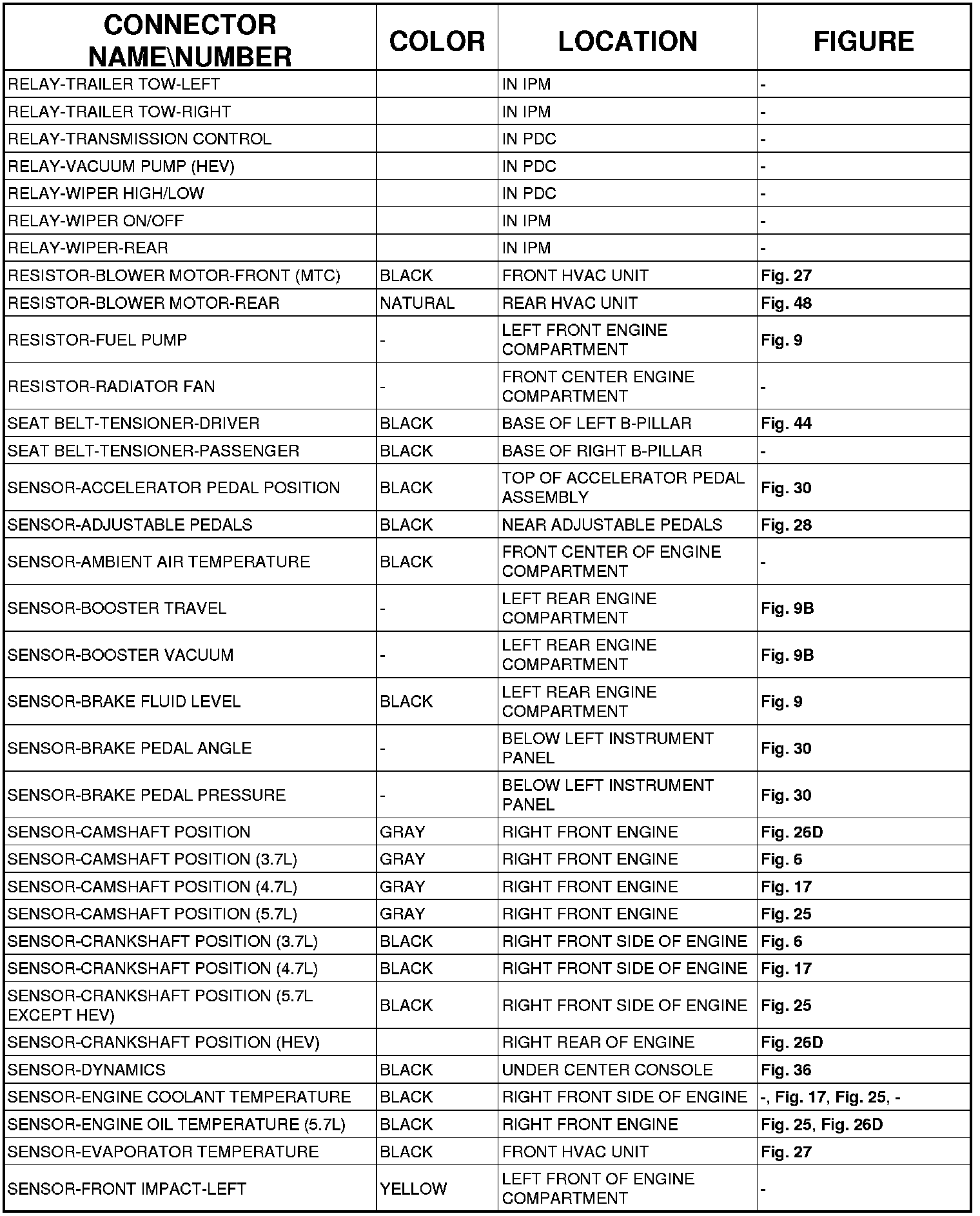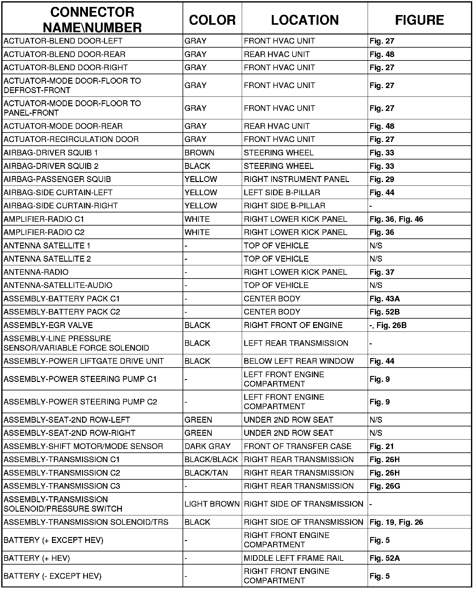 If a link on the index chart to a figure is not provided, that means that the connector and/or figure in question does NOT apply to the vehicle model selected.