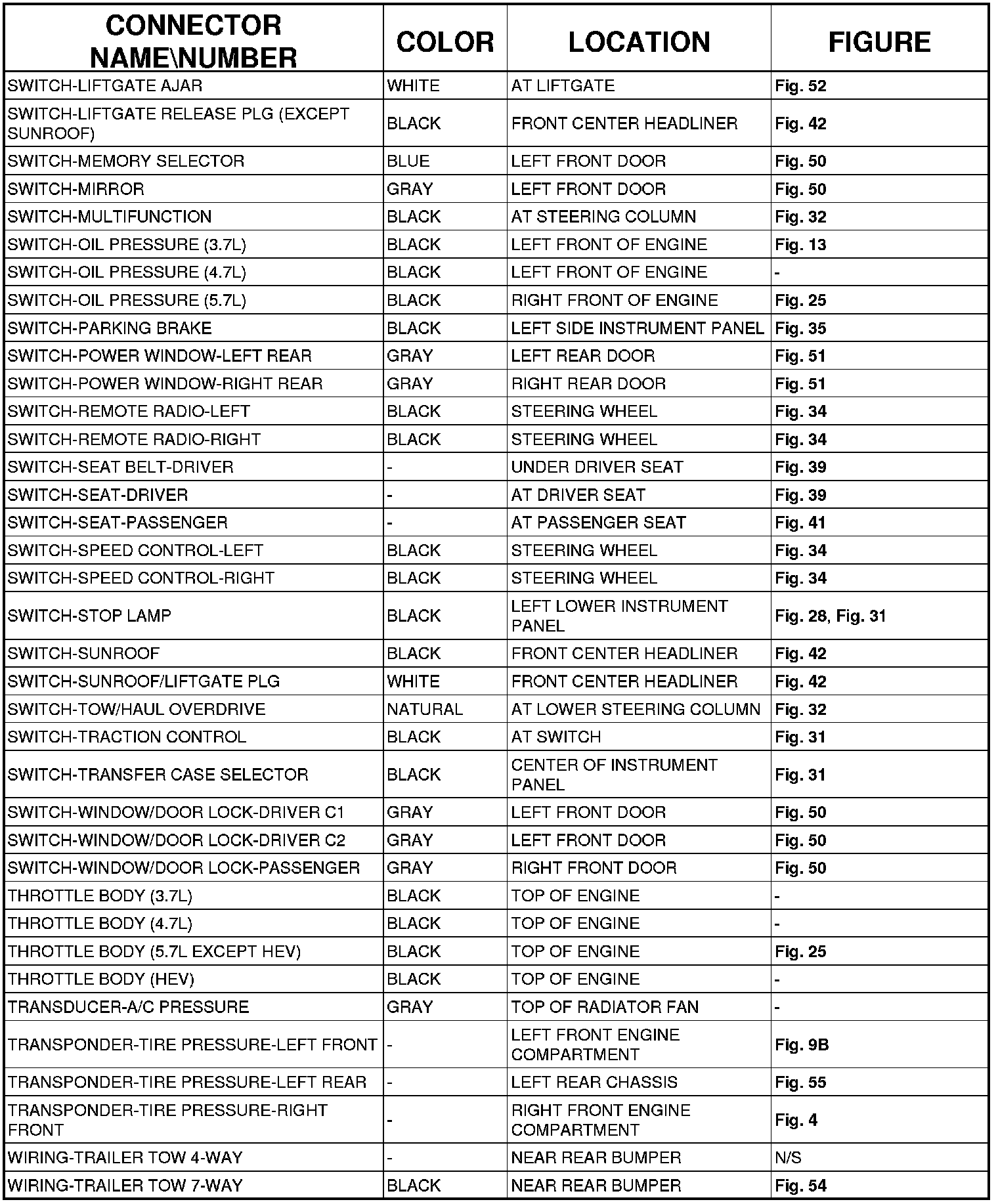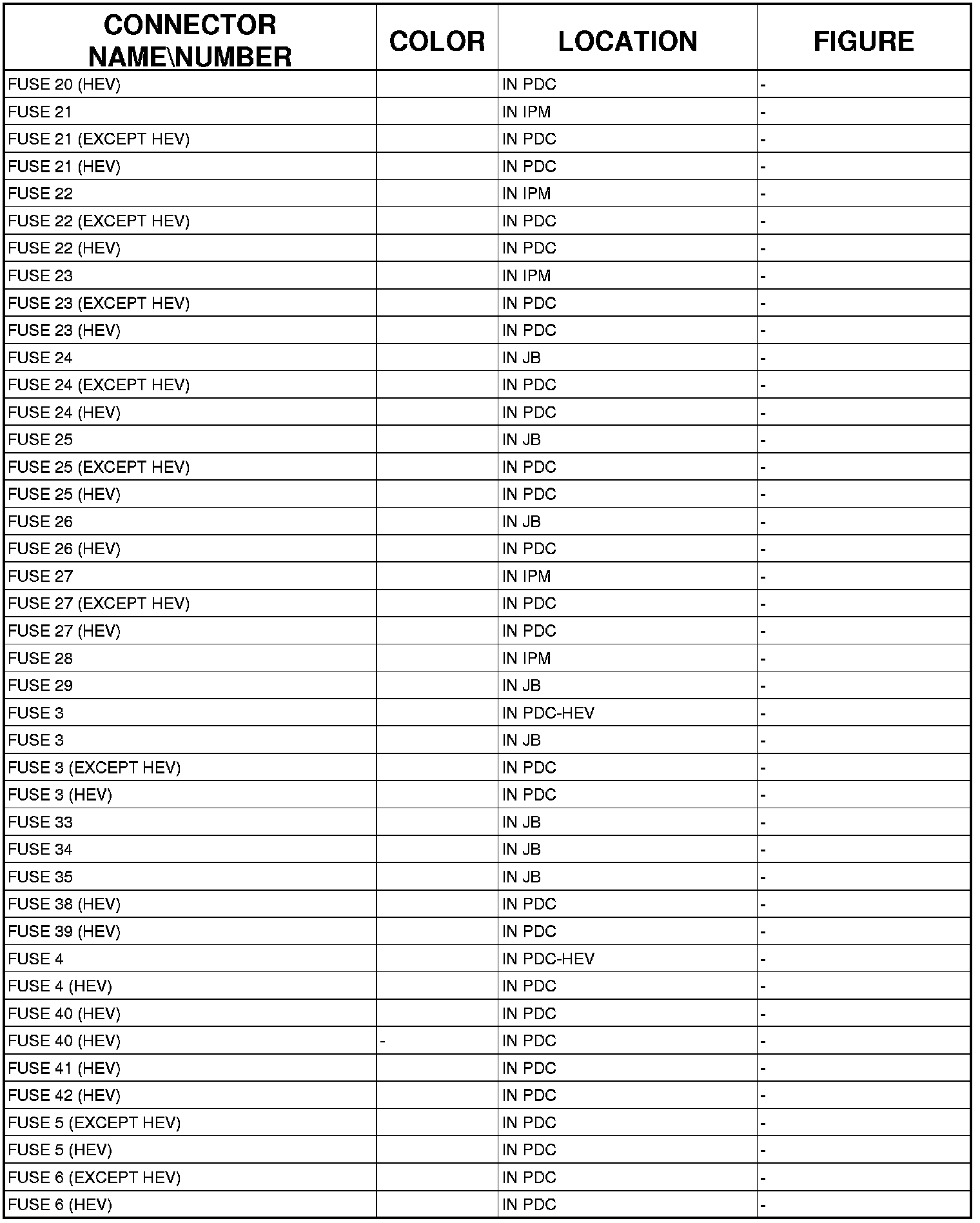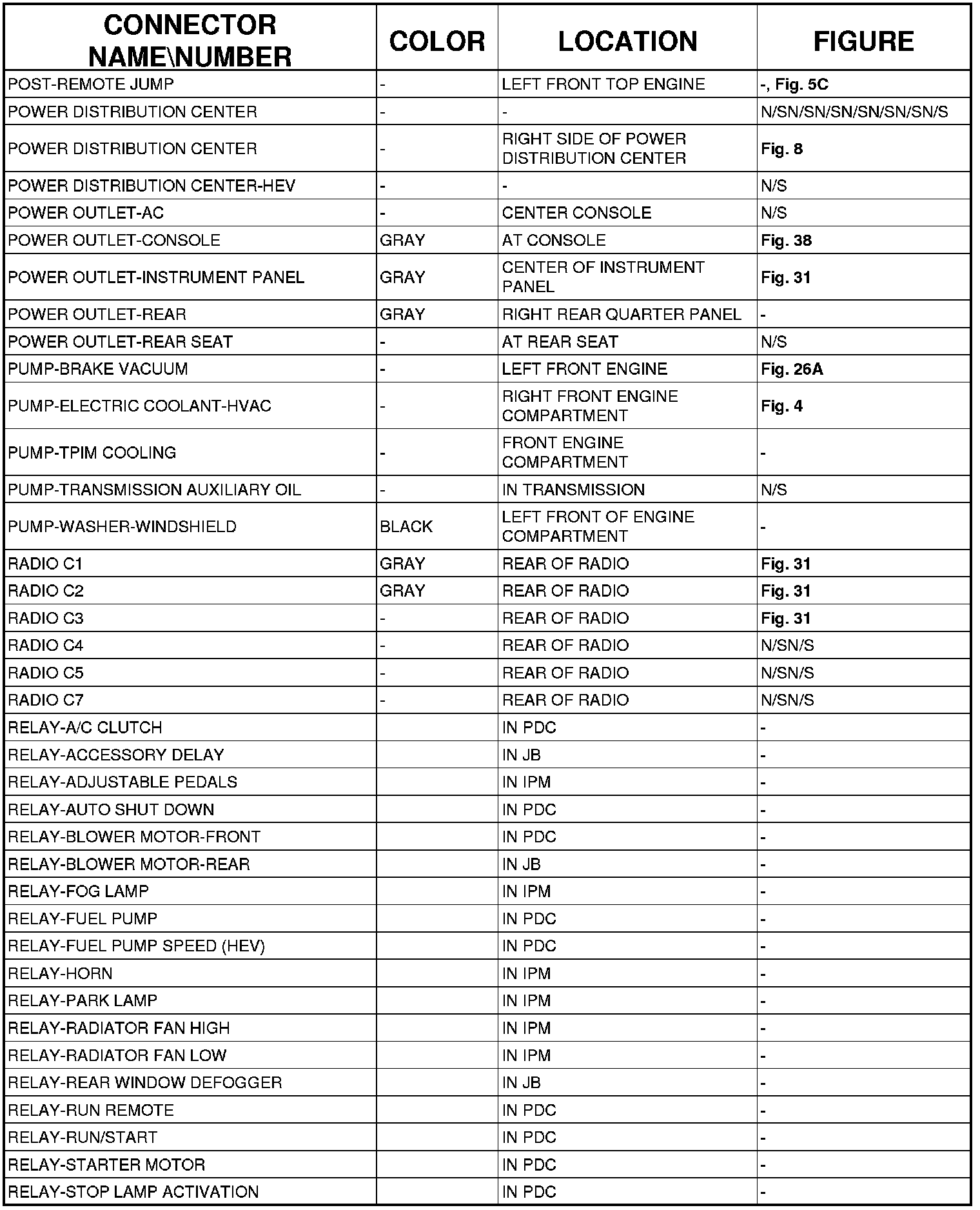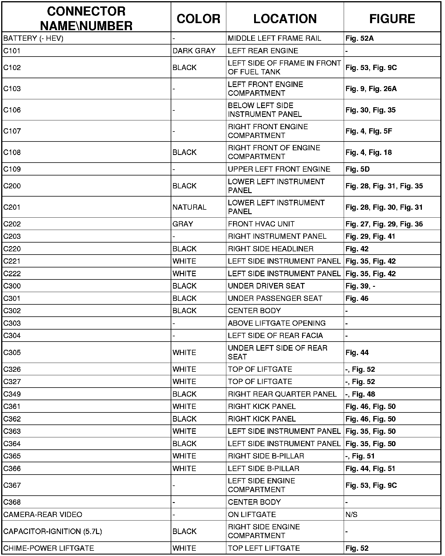 If a link on the index chart to a figure is not provided, that means that the connector and/or figure in question does NOT apply to the vehicle model selected.