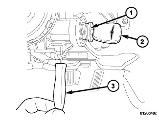 The ignition key must be in the key cylinder for cylinder removal. The key cylinder must be removed first before removing ignition switch.