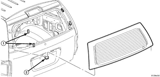 5. Position backlite in center of liftgate opening and resting on the side and lower spacers.
