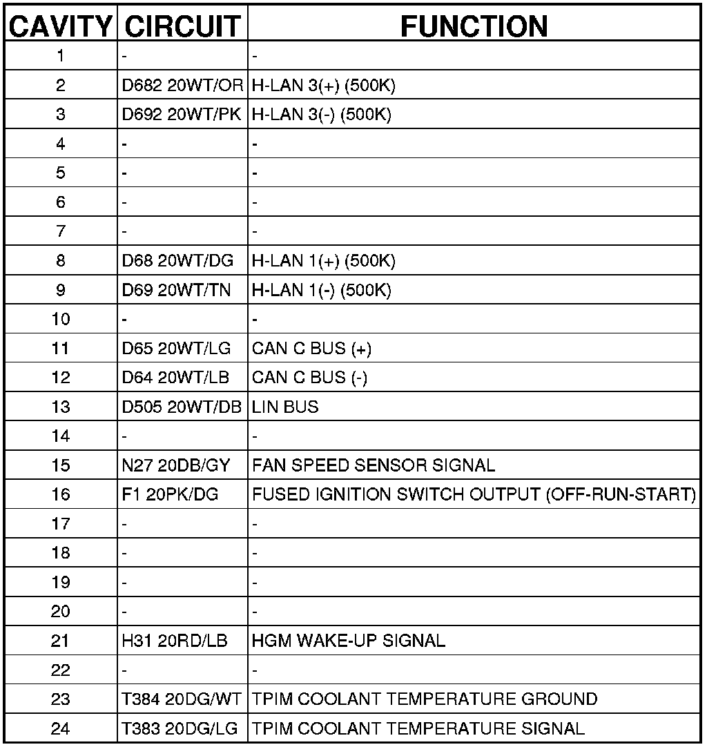 Connector C1 (HEV) - (HEADLAMP AND DASH) 24 WAY