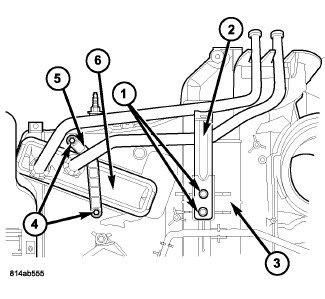 2. Install the two screws (4) that secure the heater core retaining bracket (5) to the HVAC housing. Tighten the screws to 2.2 Nm (20 in. lbs.).