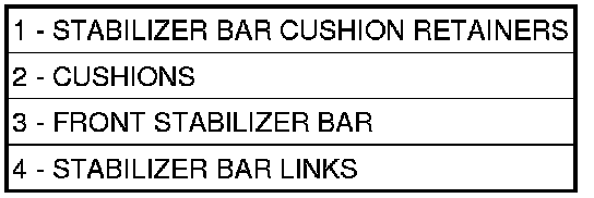 3. Remove both stabilizer bar links (4) from the vehicle. Remove each link by holding the upper retainer/nut with a wrench and turning the link bolt.