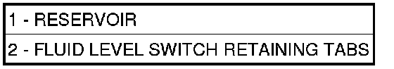 1. Remove the vehicle wiring harness connector (2) from the brake fluid level switch in the master cylinder brake fluid reservoir (1).