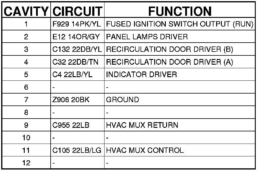 A/C Heater Control C1 (Instrument Panel) 12 Way
