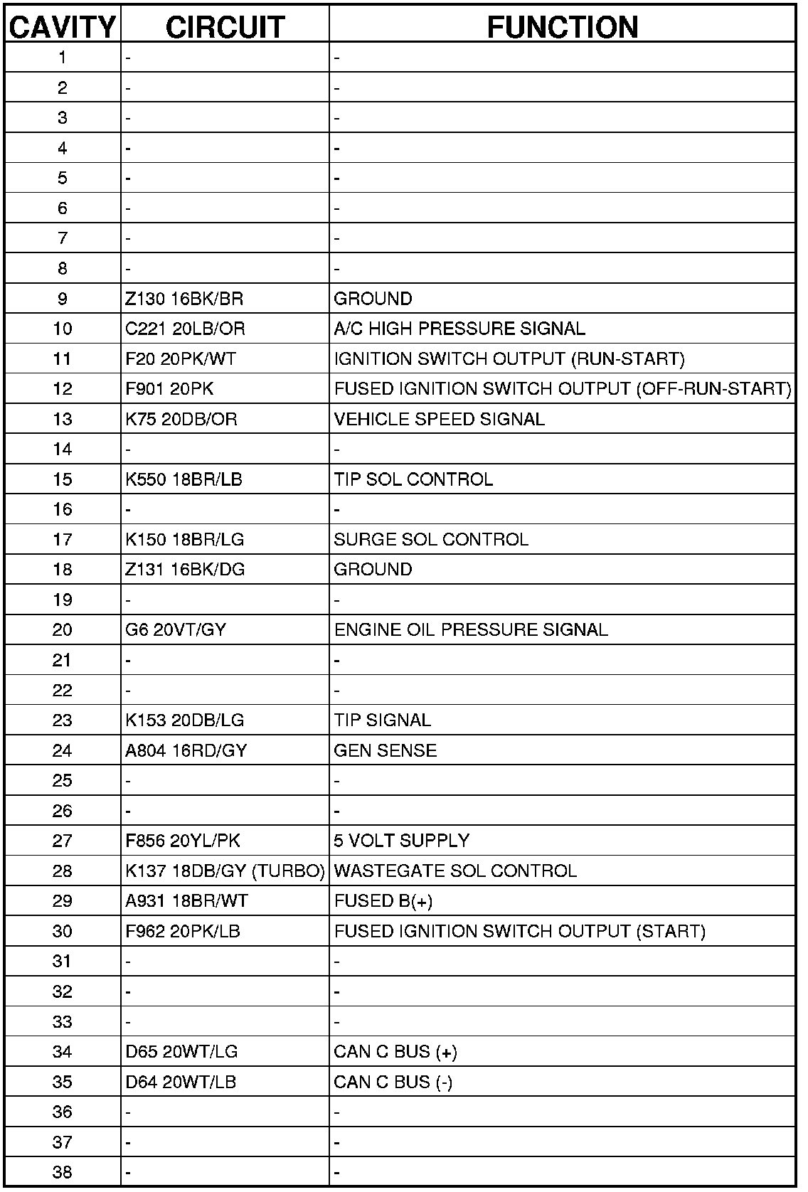 Connector C1 (NGC) - (HEADLAMP AND DASH) 38 WAY