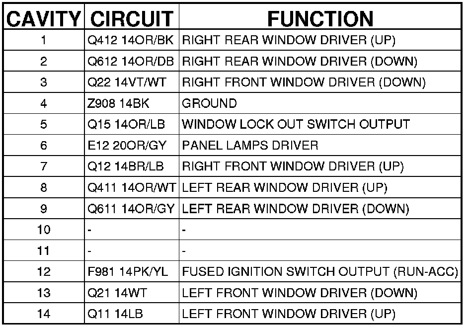 Front Window Switch (Instrument Panel) 14 Way