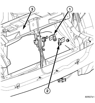Install the nut securing the ambient temperature sensor (2) to the radiator support (3).