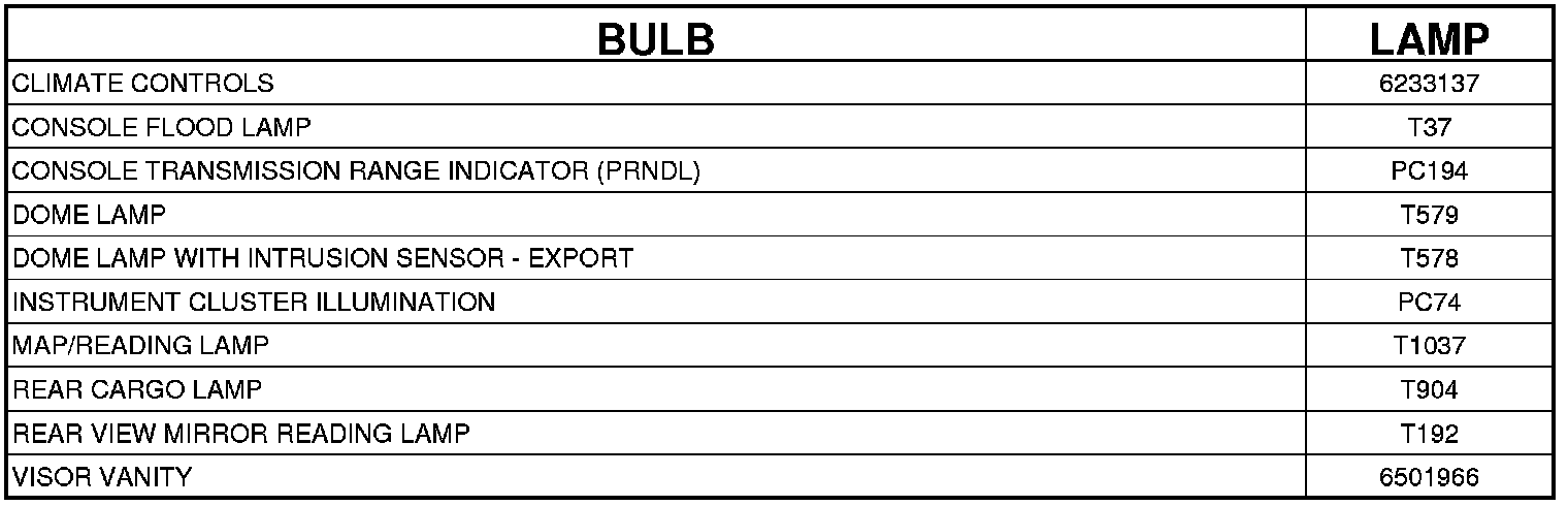 All the interior bulbs utilize a brass or glass wedge base. Bulbs with aluminum bases are not approved and should not be used.
