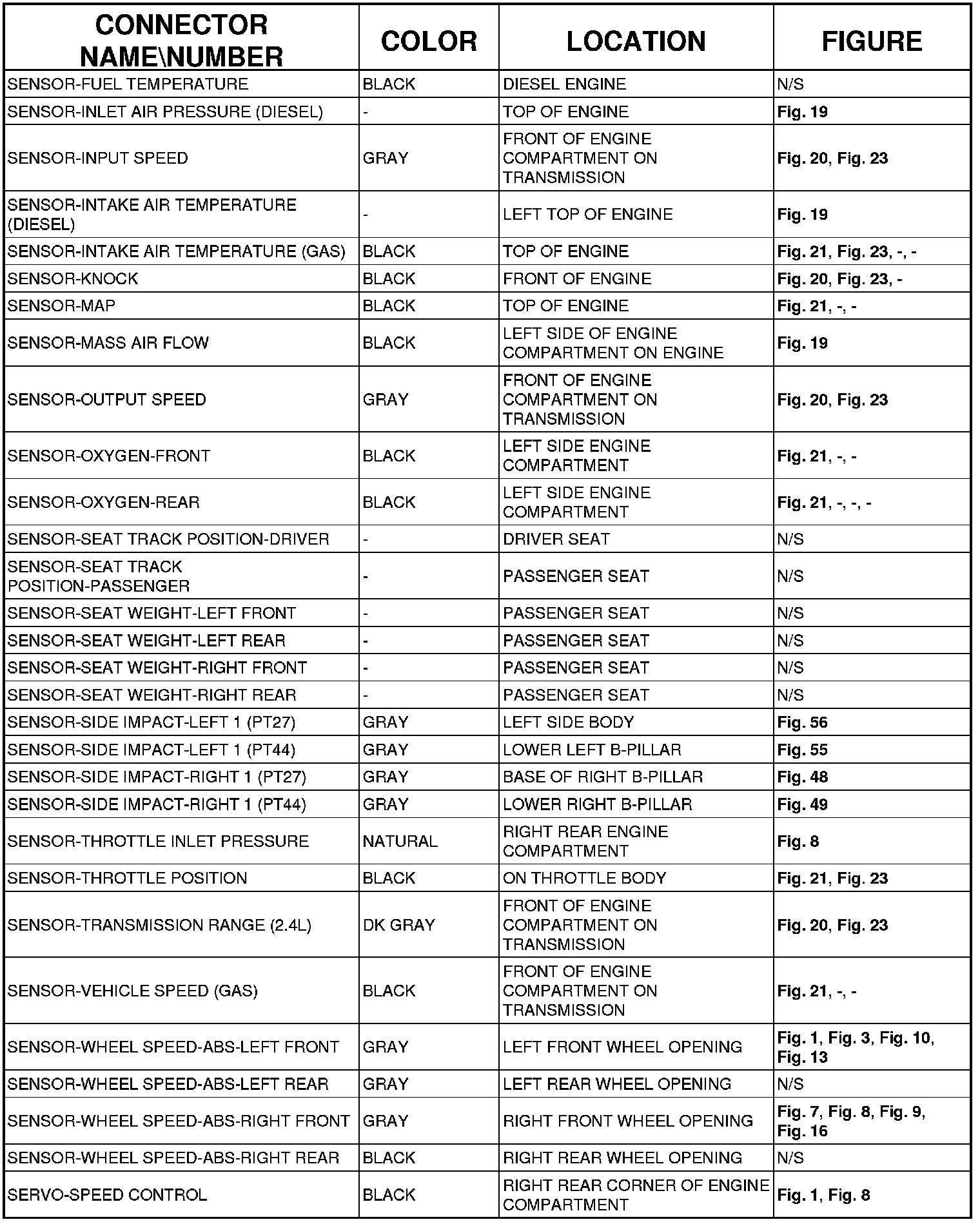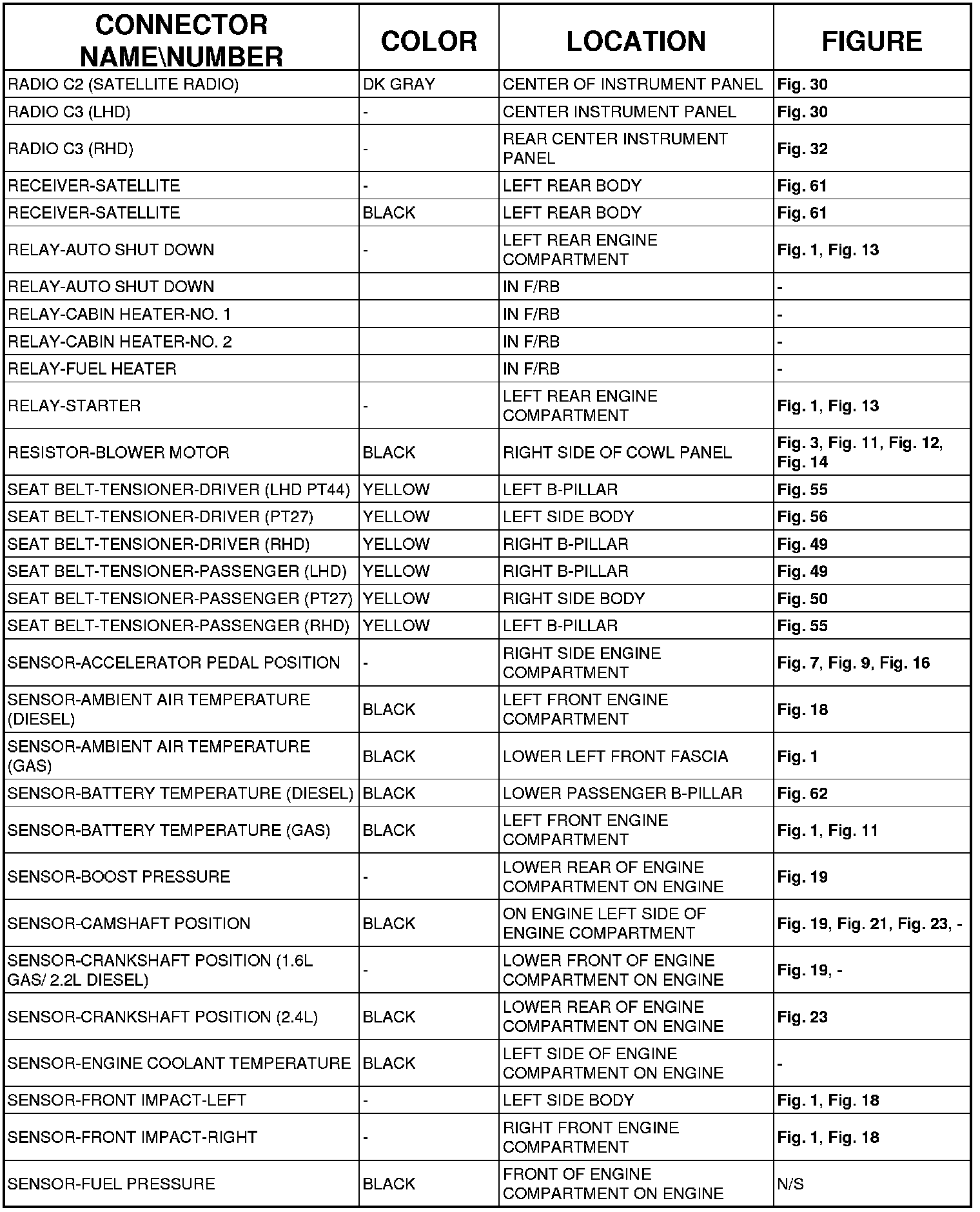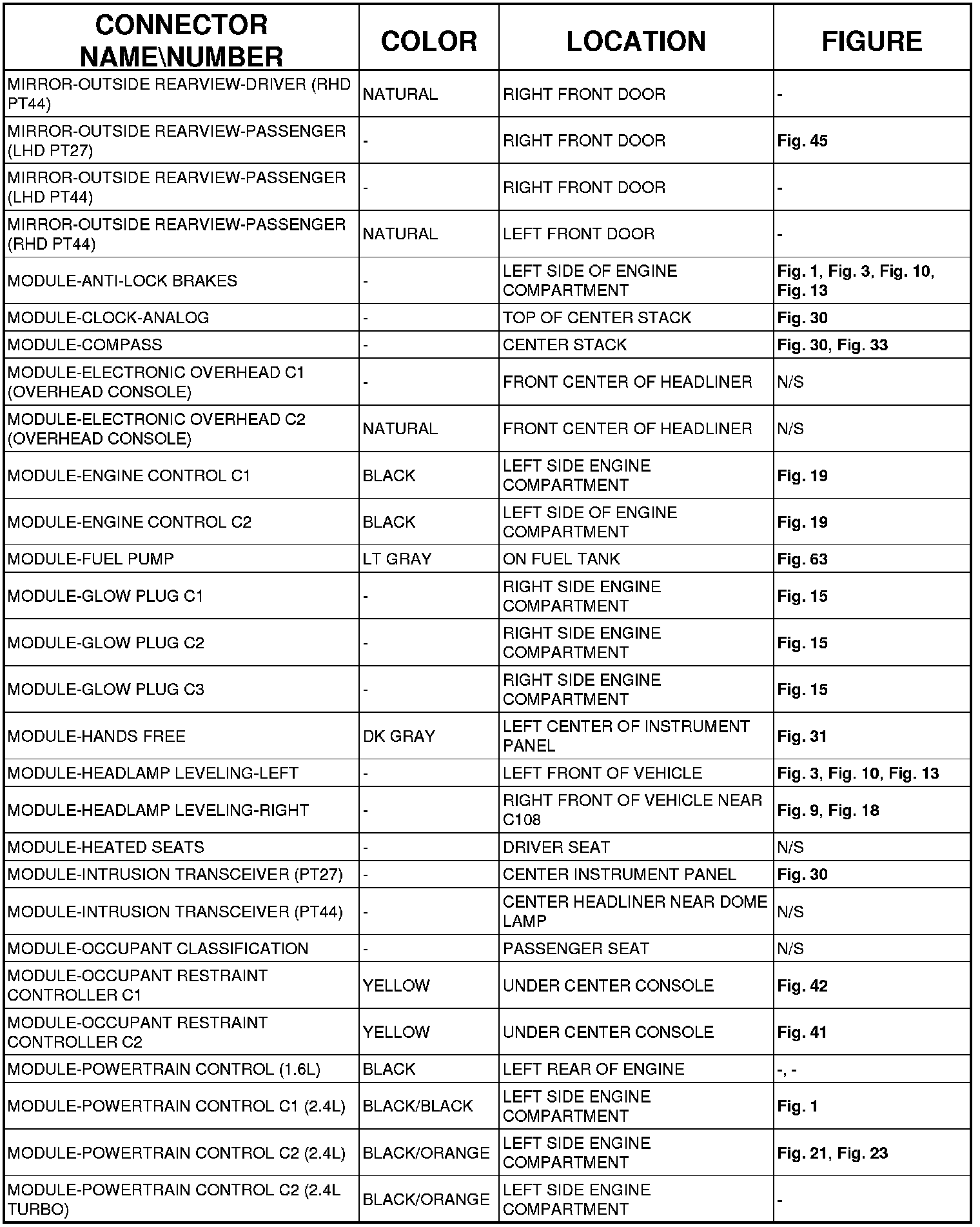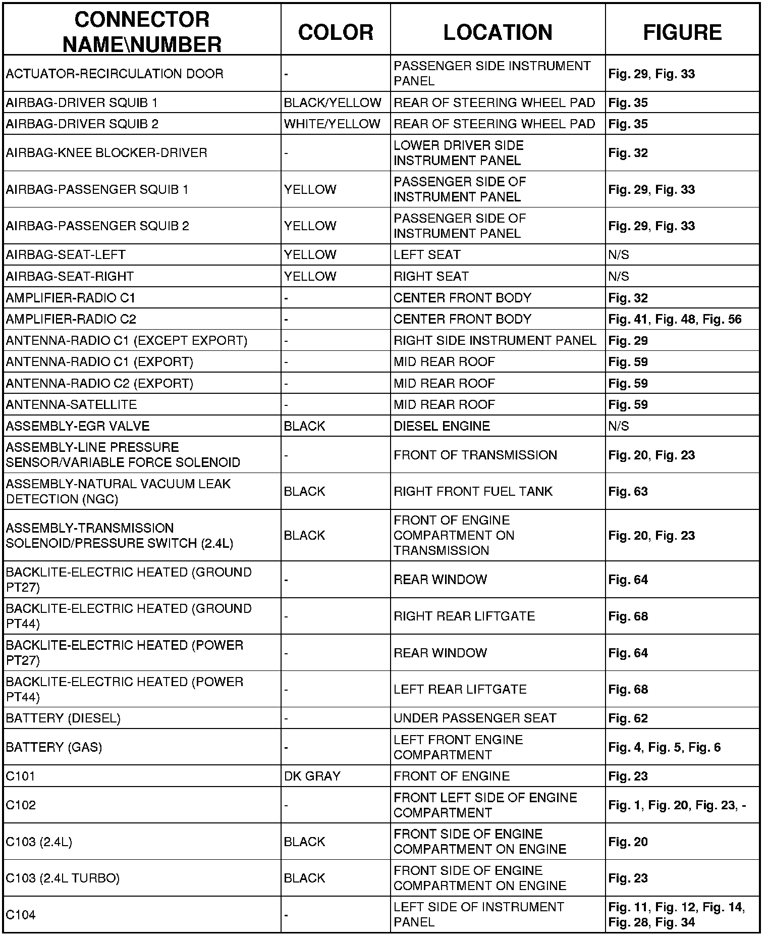 If a link on the index chart to a figure is not provided, that means that the connector and/or figure in question does NOT apply to the vehicle model selected.