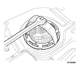 CAUTION: Mark the position of the fuel pump module on the top of the fuel tank prior to removal. The pump has to be properly aligned in the tank for the fuel gauge to work properly.