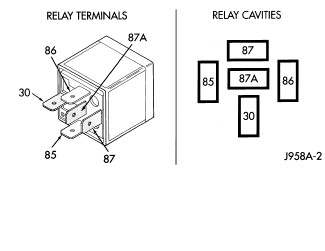 2. The relay normally closed terminal (87A) is connected to terminal 30 in the de-energized position, but is not used for this application. Go to 3.