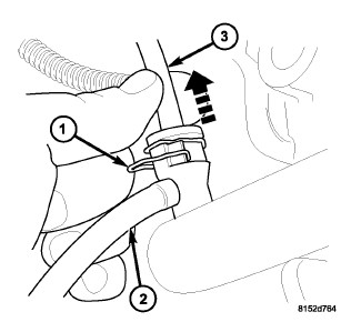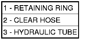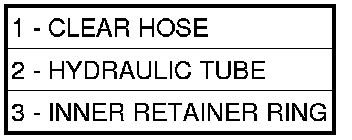 4. Release only the lower hydraulic tube snap ring (1), pull outward on tube (3) until it stops against the second ring, opening up the bleed circuit and starting the air purge and fluid fill process.