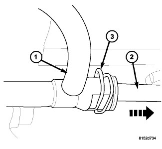 4. Release only the inner (closest to bleed port) hydraulic tube snap ring (3), pull outward on tube (2) until it stops against the second ring, opening up the bleed circuit and starting the air purge and fluid fill process.