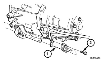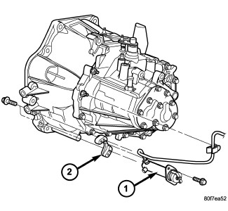 14. Re-install slave cylinder (1) into position. 1.6L equipped models: Torque slave cylinder to case bolt to 12 Nm (105 in. lbs.). 2.4L equipped models: Torque slave cylinder to case bolt to 19 Nm (168 in. lbs.).
