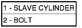 12. Remove clutch slave cylinder assembly from the transaxle case (1), but do not disconnect from the system. Allow the slave cylinder to hang, making it the lowest part of the system. CAUTION: While slave cylinder is detached from the transaxle, DO NOT actuate the clutch master cylinder. Damage to the slave cylinder will result.