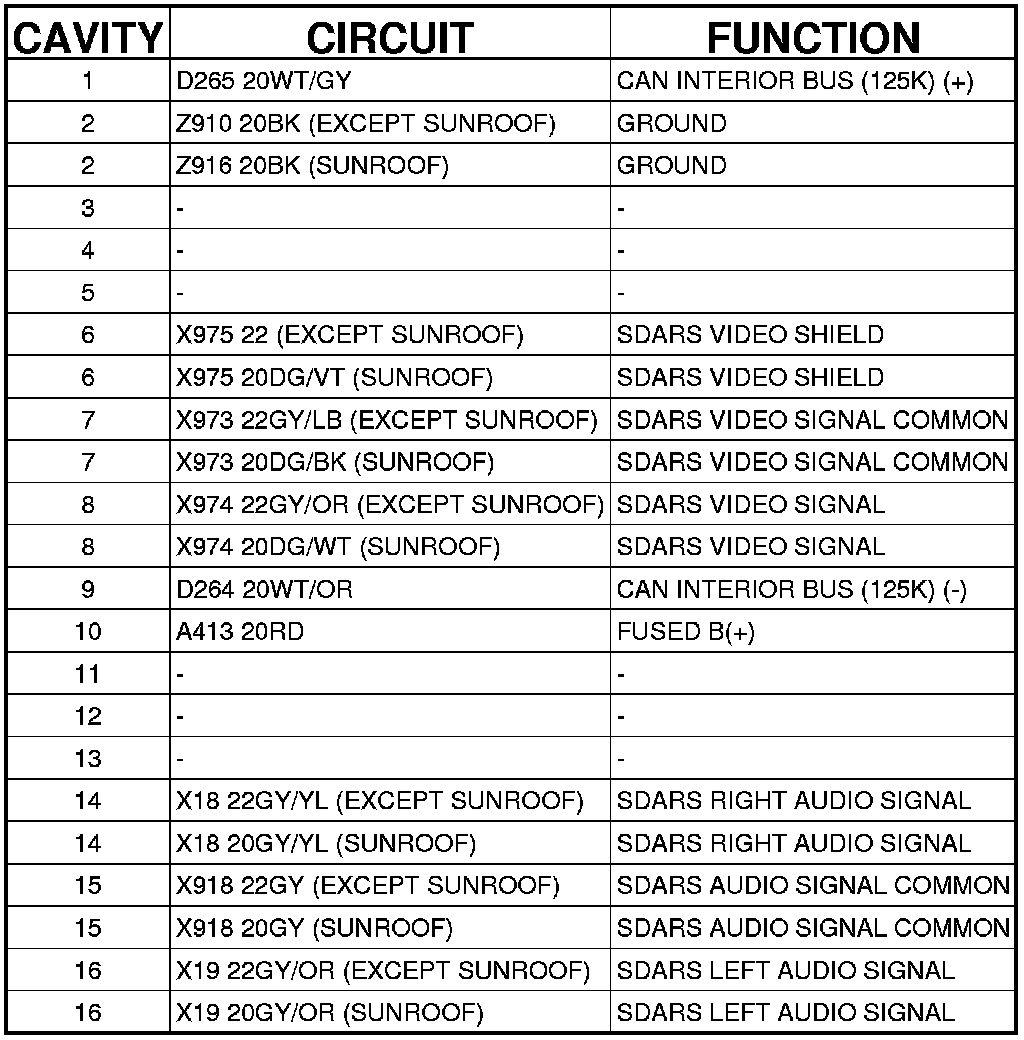 Connector C1 - (BODY LEFT/HEADLINER) 16 WAY