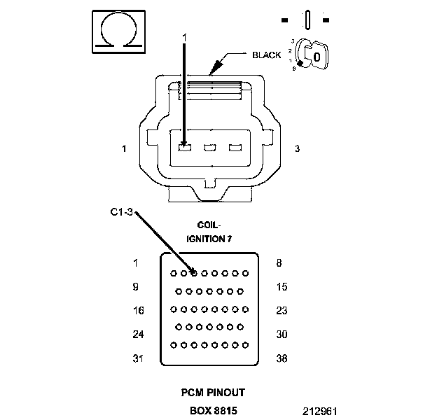 1. Measure the resistance of the (K97) Coil 7 Control circuit between the Coil On Plug 7 harness connector and the appropriate terminal of the PCM Pinout Box 8815.