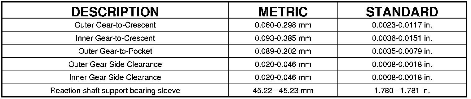 OIL PUMP CLEARANCES