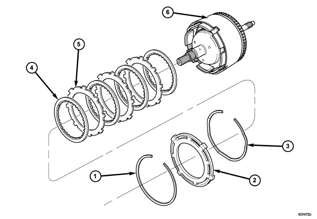 39. Pry up reverse reaction plate (4) to seat against snap ring (2).