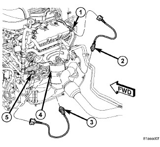 2. Connect O2S pigtail harness to engine wiring harness (5).