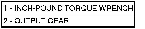 21. Using an Inch Pound Torque Wrench (1), check output shaft turning torque. Output shaft turning torque should be within 3-8 in. lbs. If the turning torque is too high, install a 0.04 mm (0.0016 in.) thicker shim. If the turning torque is too low, install a 0.04 mm (0.0016 in.) thinner shim. Repeat until the proper turning torque of 3-8 in. lbs. is obtained.