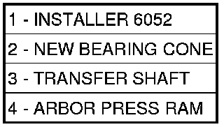 15. Install output gear bearing cone using Installer (3) Handle (2) and an Arbor Press (1).
