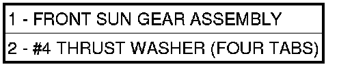 35. Install front sun gear assembly (1) and number four thrust washer (2).