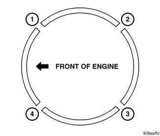 2. Before installing pistons and connecting rod assemblies into the bore, be sure that top compression ring gap (1) and the second compression ring gap (3) are staggered so that neither is in line with oil ring rail gap.
