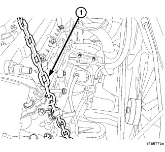 1. Connect engine lift chain (1) to engine.
