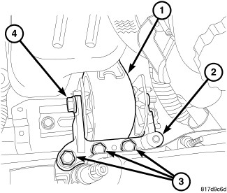 4. Install mounting bolts at the right engine mount bolts and tighten bolts to 118 Nm (87 ft. lbs.).