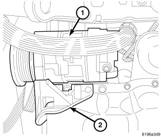 6. Install A/C compressor mounting bracket (2).